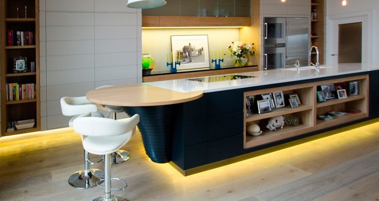 Sua cozinha poderá ganhar muito charme se você contornar com LED a ilha central da cozinha ou a bancada. Um toque imediato de modernidade ao local.